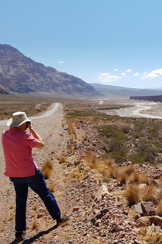 We start early in the morning (08:30am) going out to the city, we will take the road 40 to the south and then turning to the west to the Andes Mountains on the route 7. We are going to have in the begining the Pre-Andes in front of us, and behind them the Silver Range, first column of the Andes range from East to West.
